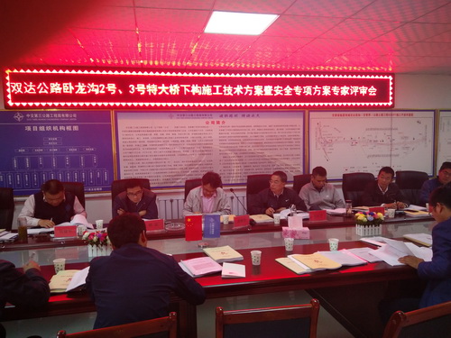 2017年5月25日,雙達(dá)項(xiàng)目邀請省內(nèi)外施工、管理、設(shè)計(jì)等方面專家進(jìn)行了現(xiàn)場勘查及查閱相關(guān)資料,召開了下部結(jié)構(gòu)施工技術(shù)方案暨安全專項(xiàng)方案評審會。與會專家組經(jīng)過質(zhì)詢、討論,認(rèn)為特大橋下構(gòu)施工方案及安全專項(xiàng)方案編制科學(xué)完善,總體可行,并建議各參建單位進(jìn)一步完善高墩測量控制及混凝土施工技術(shù),優(yōu)化冬季施工方案,切實(shí)做好高空防火、防風(fēng)、防雷擊等安全措施。