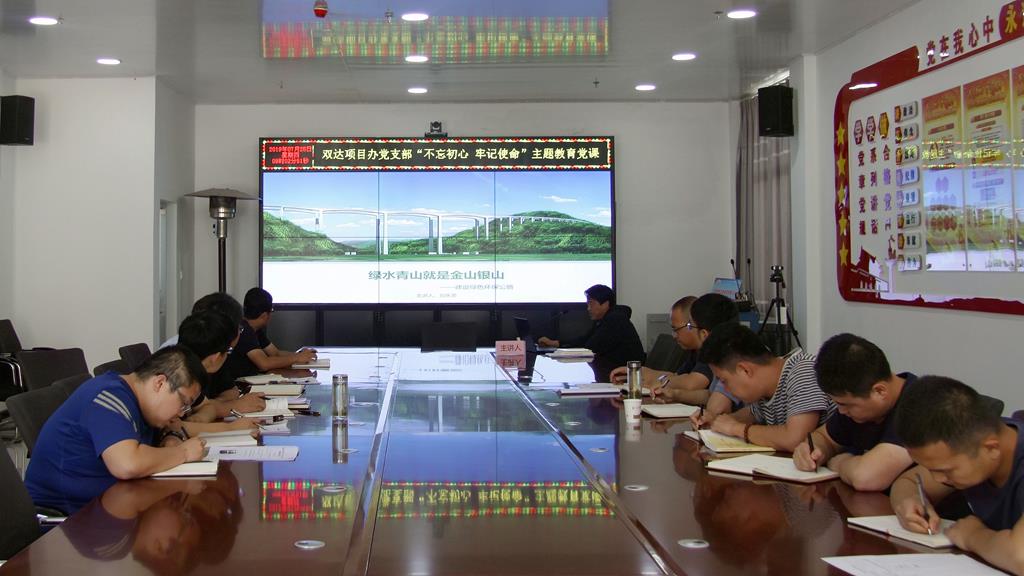 7月25日上午,雙達(dá)項(xiàng)目辦黨支部開展了“不忘初心、牢記使命”主題教育專題黨課,黨支部書記作了題為“綠水青山就是金山銀山--建設(shè)綠色環(huán)保公路”的專題教育黨課。