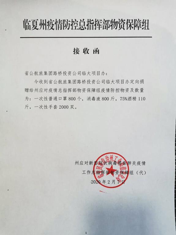 一方有難八方支援,2月7日下午,臨大項目辦黨支部書記帶領(lǐng)項目辦黨員代表,為臨夏州應(yīng)對新型冠狀病毒感染肺炎疫情工作總指揮部物資保障組送去了口罩、84消毒液、75%酒精、手套等防疫物資,此次捐贈活動充分發(fā)揮公航旅集團及路橋投資公司作為省屬國有企業(yè)在防控疫情方面的重要作用,臨大項目辦黨支部千方百計,克服種種困難,盡最大努力在克服自身防疫物資緊張等實際困難情況下,積極主動向臨夏州捐贈這批防疫物資,加強與當(dāng)?shù)匦l(wèi)健委、防疫應(yīng)急管理等政府職能部門的聯(lián)動聯(lián)守、信息共享,為打贏疫情防控阻擊戰(zhàn)作出應(yīng)有貢獻。
