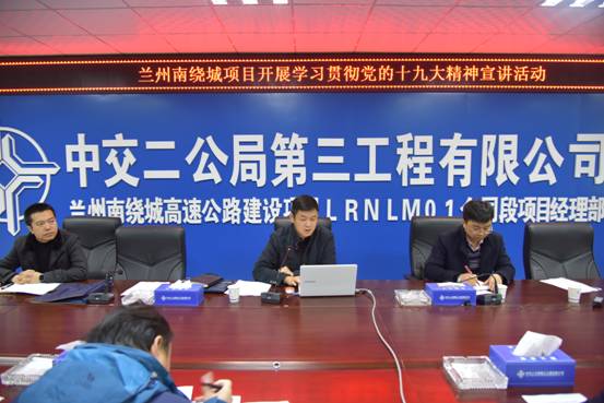 2017年12月14日,蘭州南繞城項目辦根據省公航旅集團黨委關于貫徹落實黨的十九大精神宣講方案要求和路投公司黨委安排部署,在項目路面1標召開學習貫徹黨的十九大精神宣講會,項目全線各參建單位項目經理、書記、黨員和項目辦黨員干部參加了會議。