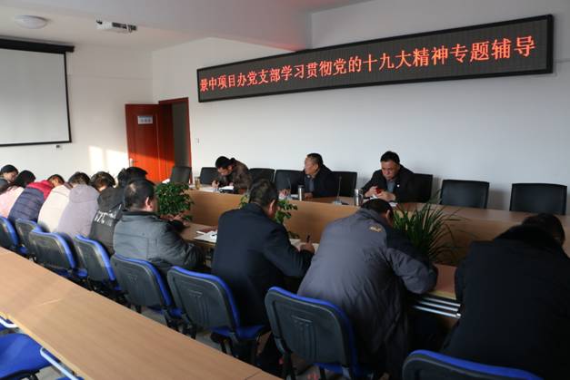 項目辦黨支部書記領學了《深入學習貫徹落實黨的十九大精神 深刻理解新時代我國社會主要矛盾》,同時,結合自身學習情況深刻地分析了貫徹落實黨的十九大精神的意義,并對中國特色社會主義新時代的歷史方位和新時代我國社會主要矛盾等內容進行了專題輔導。