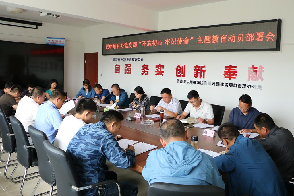 2019年7月3日,景中項目辦黨支部組織召開了“不忘初心、牢記使命”主題教育部署動員會議,會議傳達學習了習近平總書記“不忘初心、牢記使命”重要講話、省委、集團公司及路橋投資公司“不忘初心、牢記使命”主題教育動員部署會精神,對項目辦黨支部開展主題教育活動進行了動員部署。公司“不忘初心、牢記使命”主題教育指導組參加了會議并提出相關要求,項目辦全體人員參加了會議。