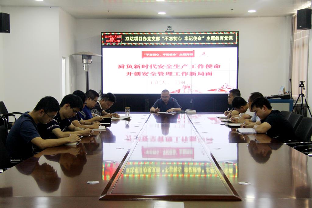 7月22日下午,雙達項目辦黨支部開展了“不忘初心、牢記使命”主題教育專題黨課,黨支部副書記王剛同志作了題為“肩負新時代安全生產工作使命,開創安全管理工作新局面”的專題教育黨課。